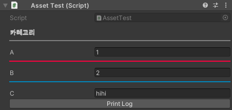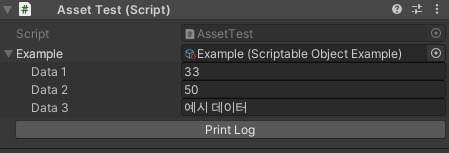 이렇게 `AssetTest`컴포넌트의 인스펙터에서 데이터를 바로 펼쳐서 편집할 수 있습니다