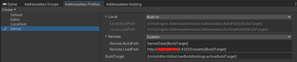 원격 서버로 `Remote.LoadPath`를 수정해주고 어드레서블을 다시 빌드해서