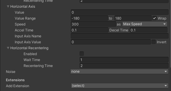 cam.GetCinemachineComponent<CinemachinePOV>().m_HorizontalAxis.m_InputAxisValue = 0f;