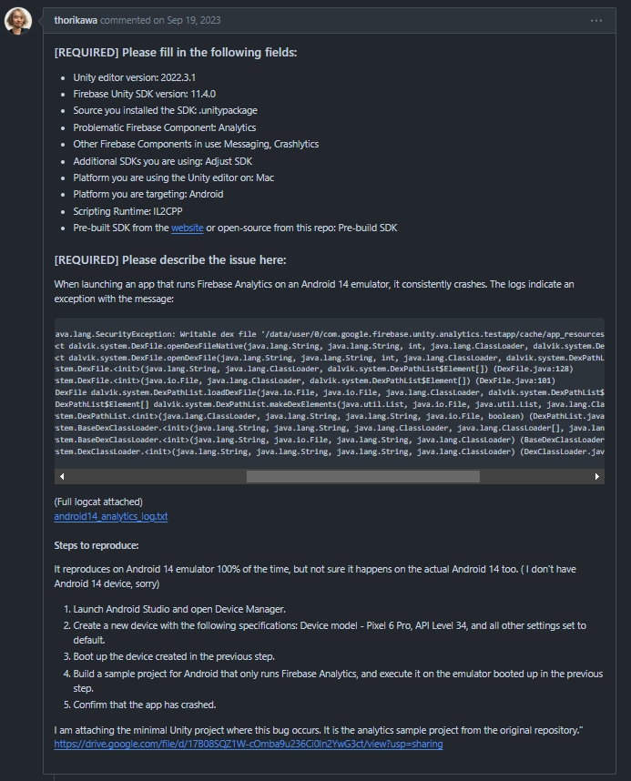 파이어베이스 Unity SDK 깃허브 저장소에 이슈로 올라온 내용이있다.
