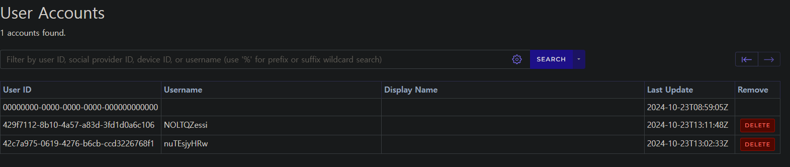 그리고 왼쪽에 ACCOUNTS탭에 들어가보면 가입된 유저를 확인할 수 있다