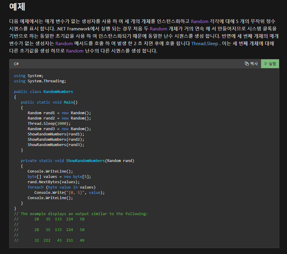 그래서 Task에서 난수생성이 필요할때 대체재로 쓸쑤있는 System.Random의 사용법을 메모한다.