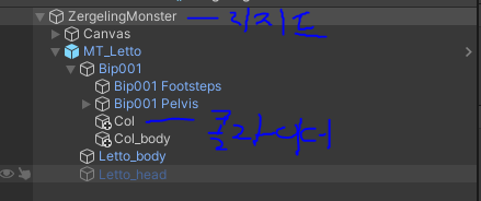 Raycasthit.transform은 리지드바디가있는 루트부모인 ZergelingMonster를 반환한다.