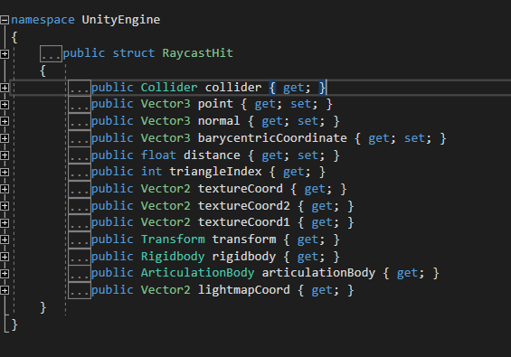 Raycasthit은 구조체 이고 레이캐스트를 할 때 맞은 오브젝트에 대한 정보를 담아서 out하는 구조체이다