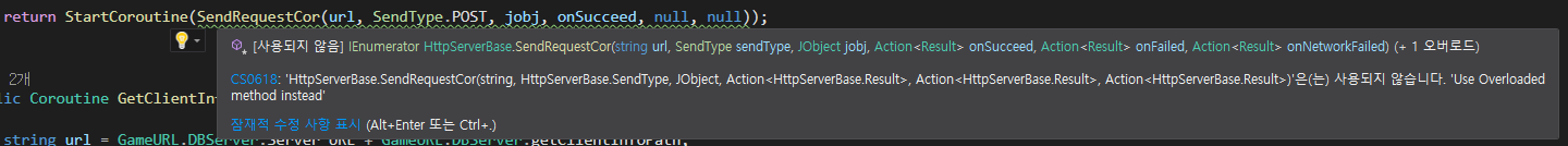 이제 다른 협업자가 SendRequestCor() 코루틴을 실행하려하면 경고를 보고