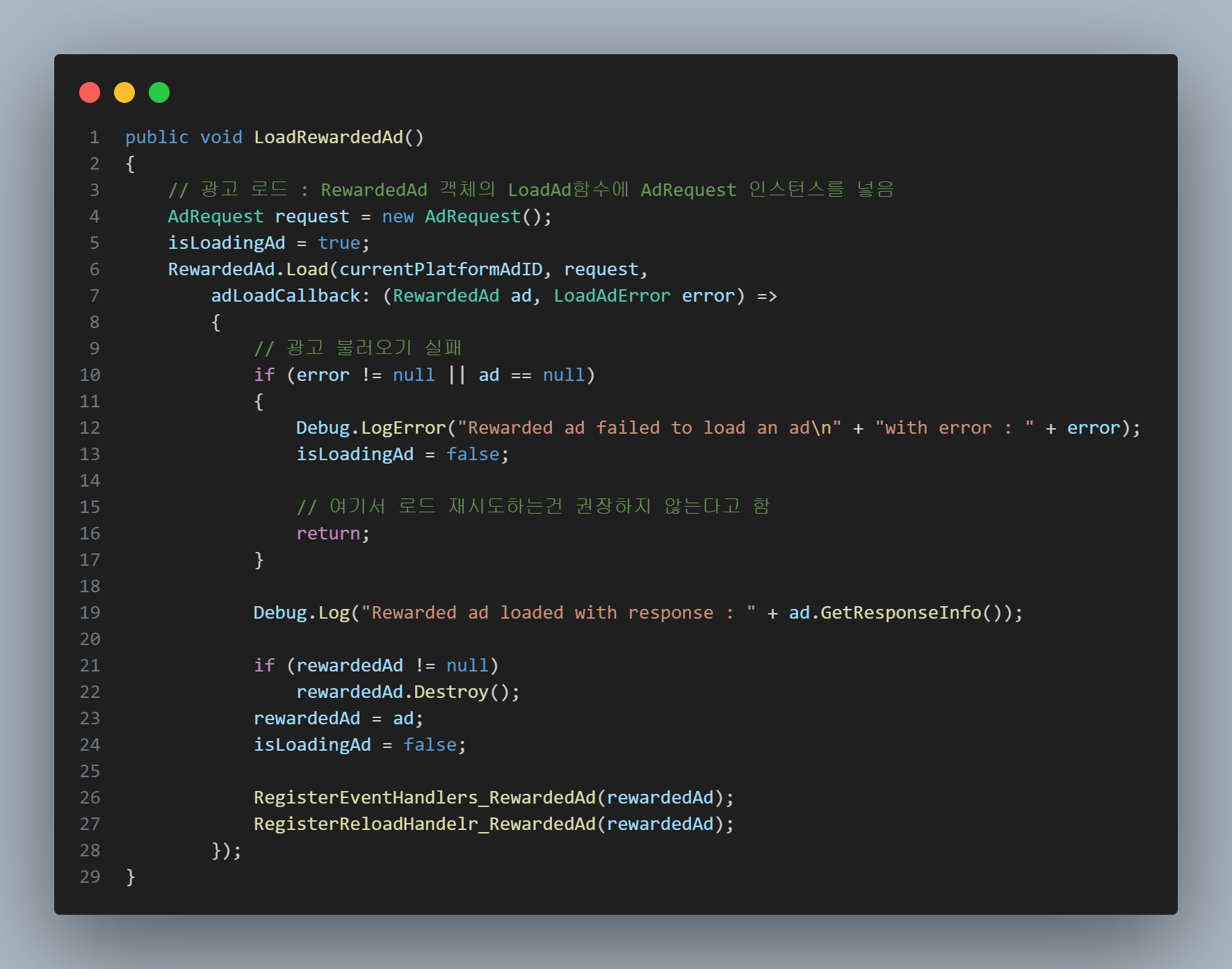 아래와 같이 광고를 미리 로드해두는 구간이 있다.