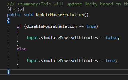 가 돼버리면 터치 입력을 마우스 입력으로 받아들이질 않는다. (기본값은 당연히 true