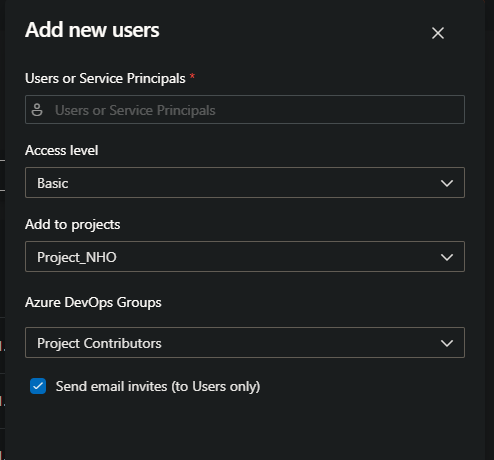 - 프로젝트도 배정해주고 Access level은 Basic, DevOps 그룹은 Project Contributors인걸 꼭 확인하자